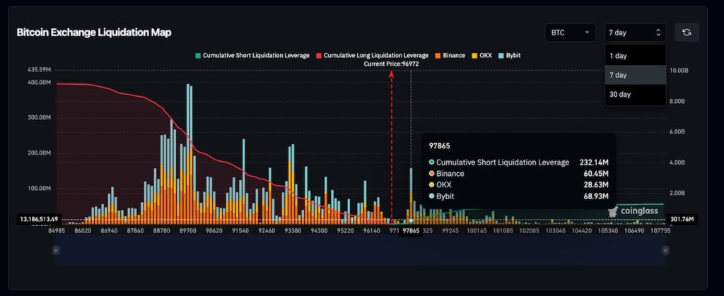 ビットコイン96500ドル台で推移、大口主導の反発続く 米関税判···